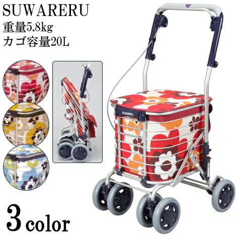 ショッピングカート 4輪 花柄 おしゃれ 座れて、お買い物カゴも載せられるワイヤーカートSUWAREL スワレル シルバーカー 折りたたみ 自立式 花柄 ブルー/レッド/イエロー ユーバ産業【送料無料】