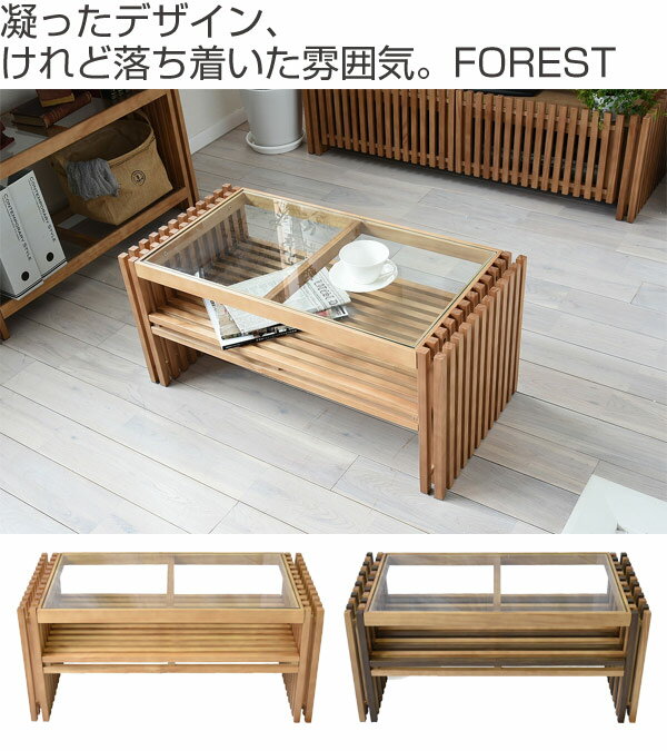 センターテーブル ガラス天板 天然木 FOREST 幅84cm ( 送料無料 ローテーブル 座卓 机 木製 角材 ウッディー モダンデザイン )【3980円以上送料無料】