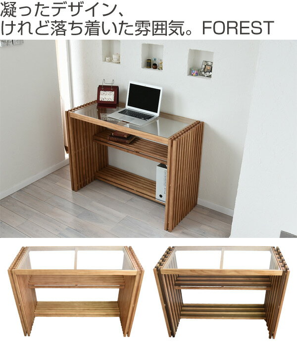 デスク コンソール ガラス天板 天然木 FOREST 幅100cm ( 送料無料 机 PCデスク パソコンデスク 木製 角材 ウッディー モダンデザイン )【3980円以上送料無料】