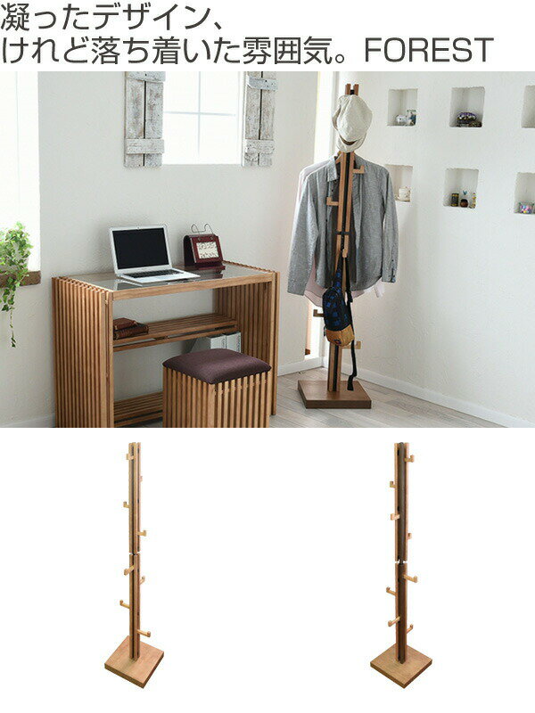 ハンガーラック ポールハンガー 天然木 FOREST 高さ165cm ( 送料無料 ウッドラック コートハンガー 木製 角材 ウッディー モダンデザイン )【3980円以上送料無料】